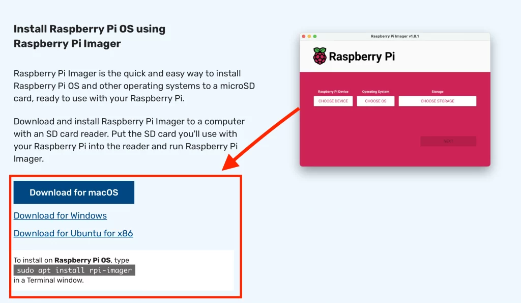 ทำการ Download และ Install Raspberry Pi Imager ได้จาก https://www.raspberrypi.com/software/