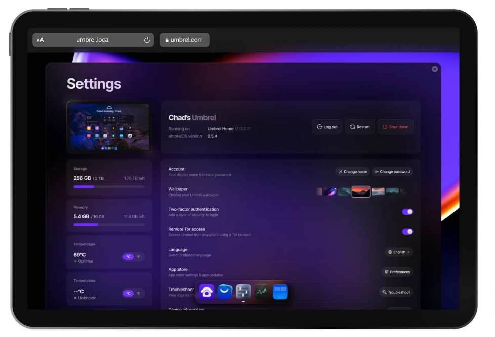 หลังจากที่ Raspberry Pi เปิดเครื่องไปได้ประมาณ 5 นาที เราก็จะเข้าระบบ Umbrel ได้โดยผ่าน Web Browser ที่ http://umbrel.local และระบบก็จะมีการให้ Set Up ต่างๆ ก่อนใช้งาน